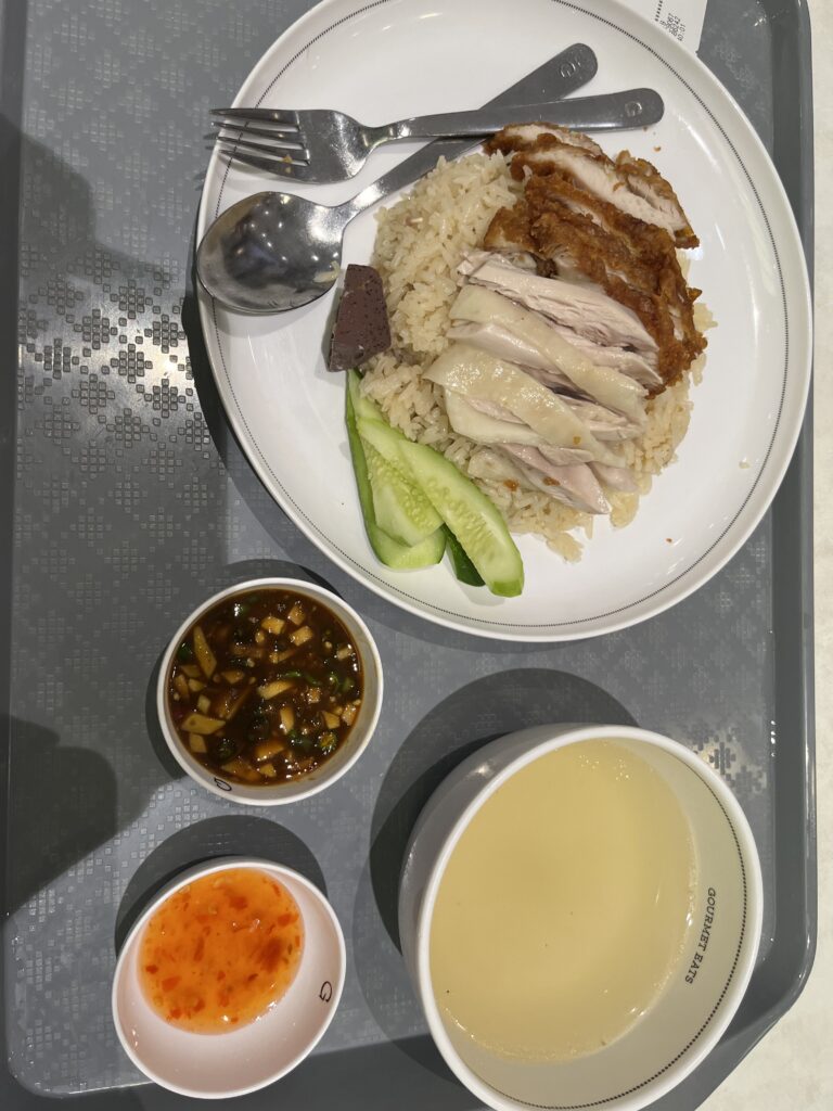ジューシーな茹で鶏と、鶏油が香るライスの組み合わせがクセになります。