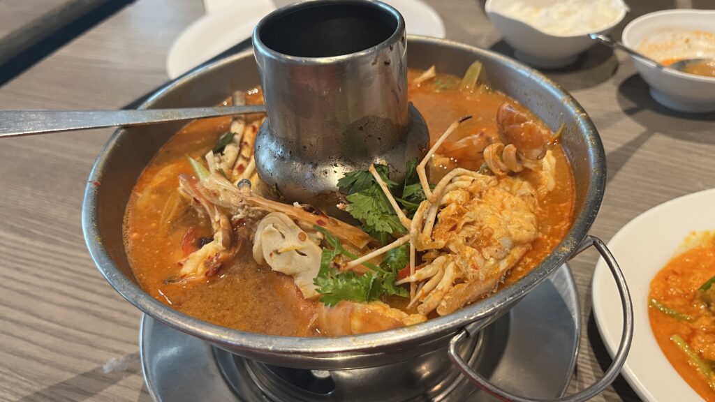 名物のプーパッポンカレー(蟹の卵カレー)は濃厚&スパイシーで、価格は少し張るけど毎回マストオーダー。