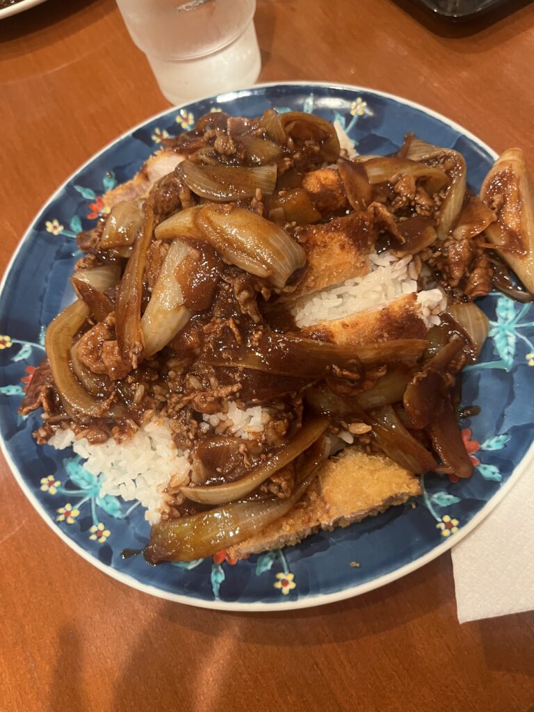 お肉・玉ねぎ・ご飯がしっかり入っていてボリューム満点。