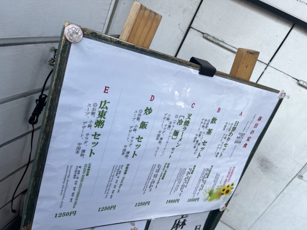私たちは 日替わりセット(1050円) と 飲茶セット(1980円) を注文しました。