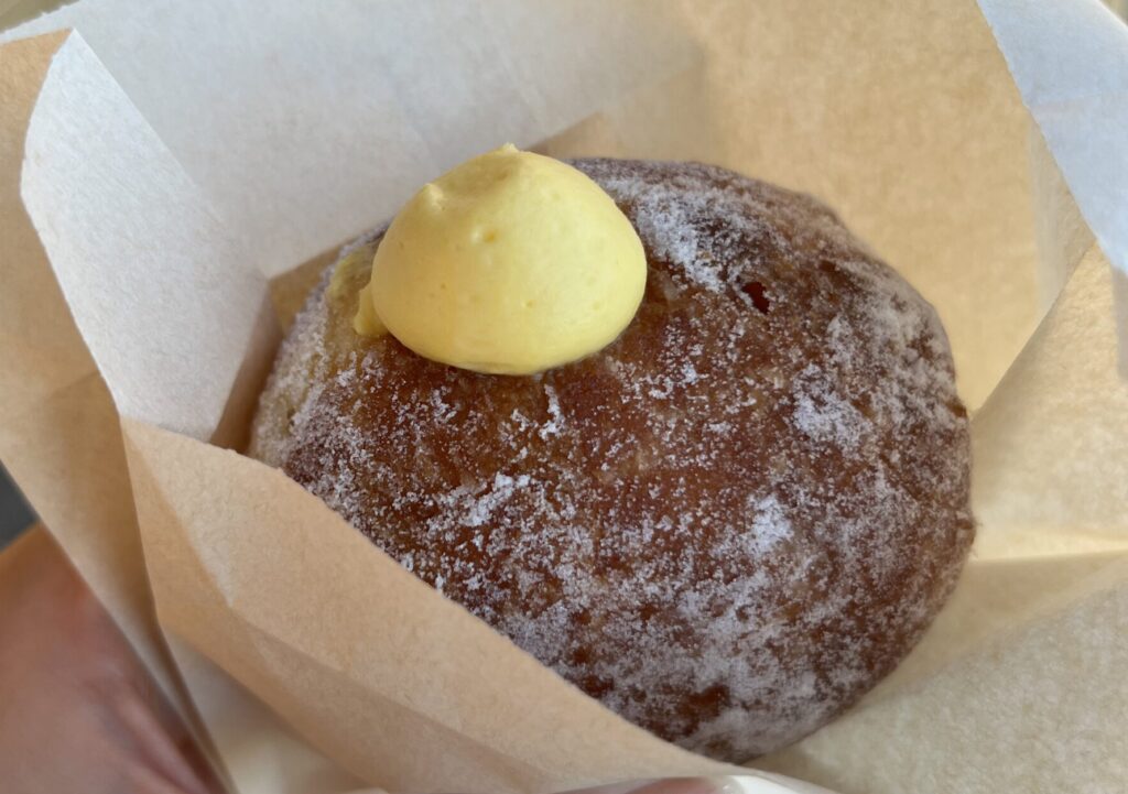もちもち生地の中にカスタードクリームがたっぷり入ったドーナツをいただきました。これが本当に美味しかった!