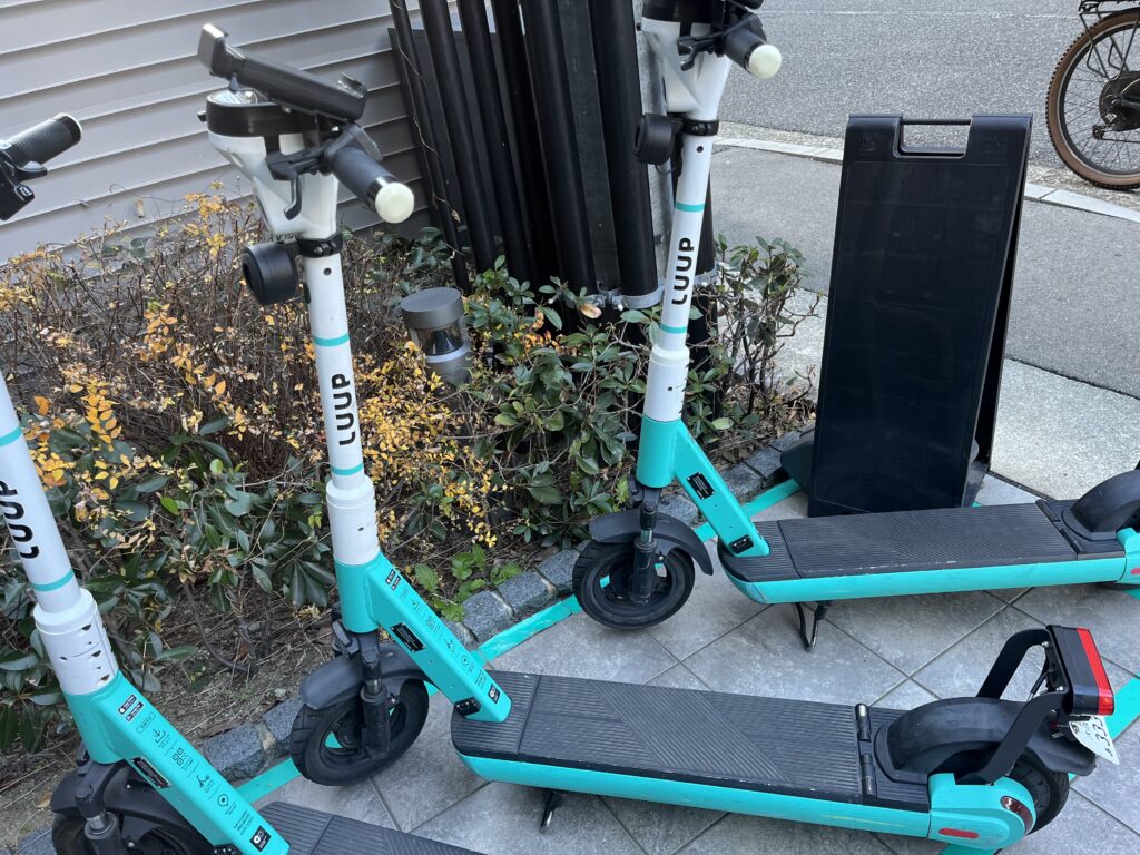 LUUPでは電動自転車か電動キックボードを選べますが、キックボードのサイズ感に少しビビって、最初は電動自転車を選択しました。
