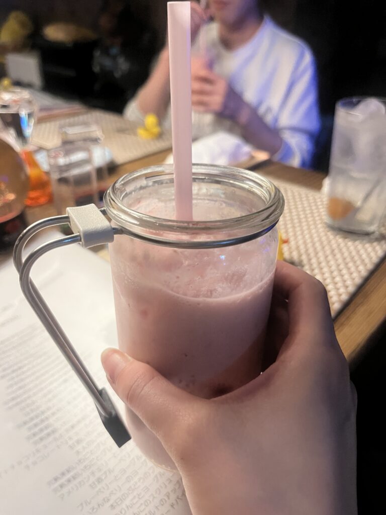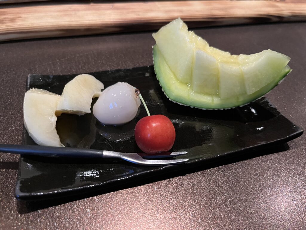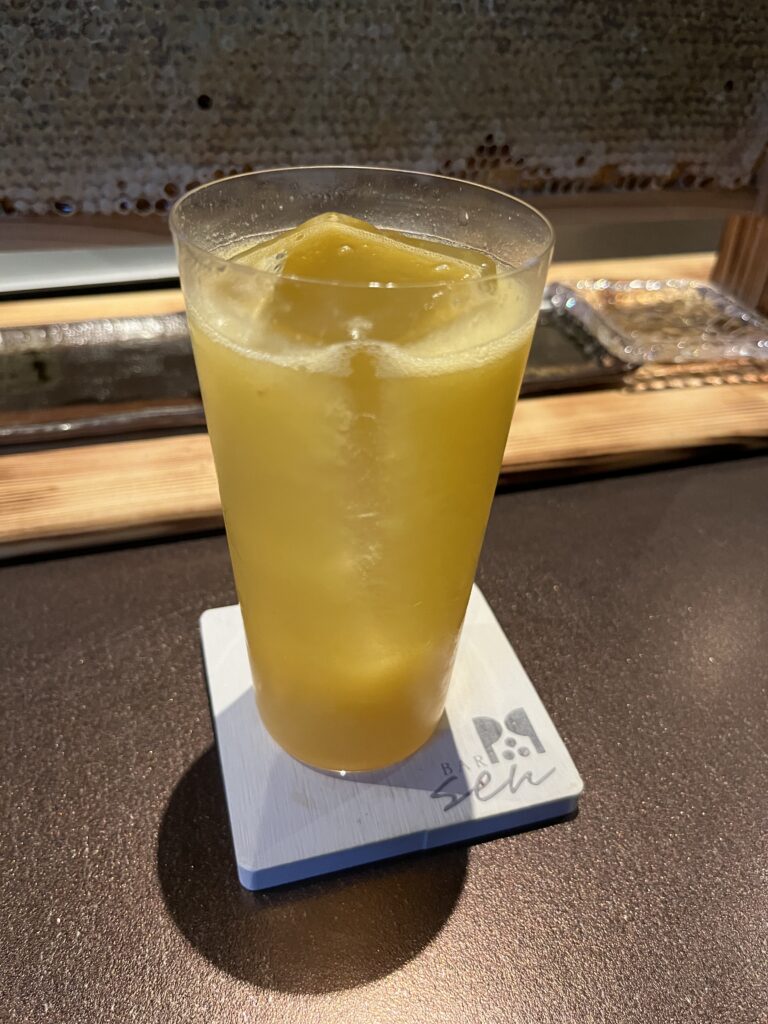 ドリンクはフルーツを主役にしたカクテルが中心で、どれも飲みやすいのが特徴。季節ごとに使われるフルーツが変わり、マスカットの中に炭酸を閉じ込めたものや、見たことのない色のキウイなど、こだわりが随所に感じられます。フルーツ自体もとても新鮮。